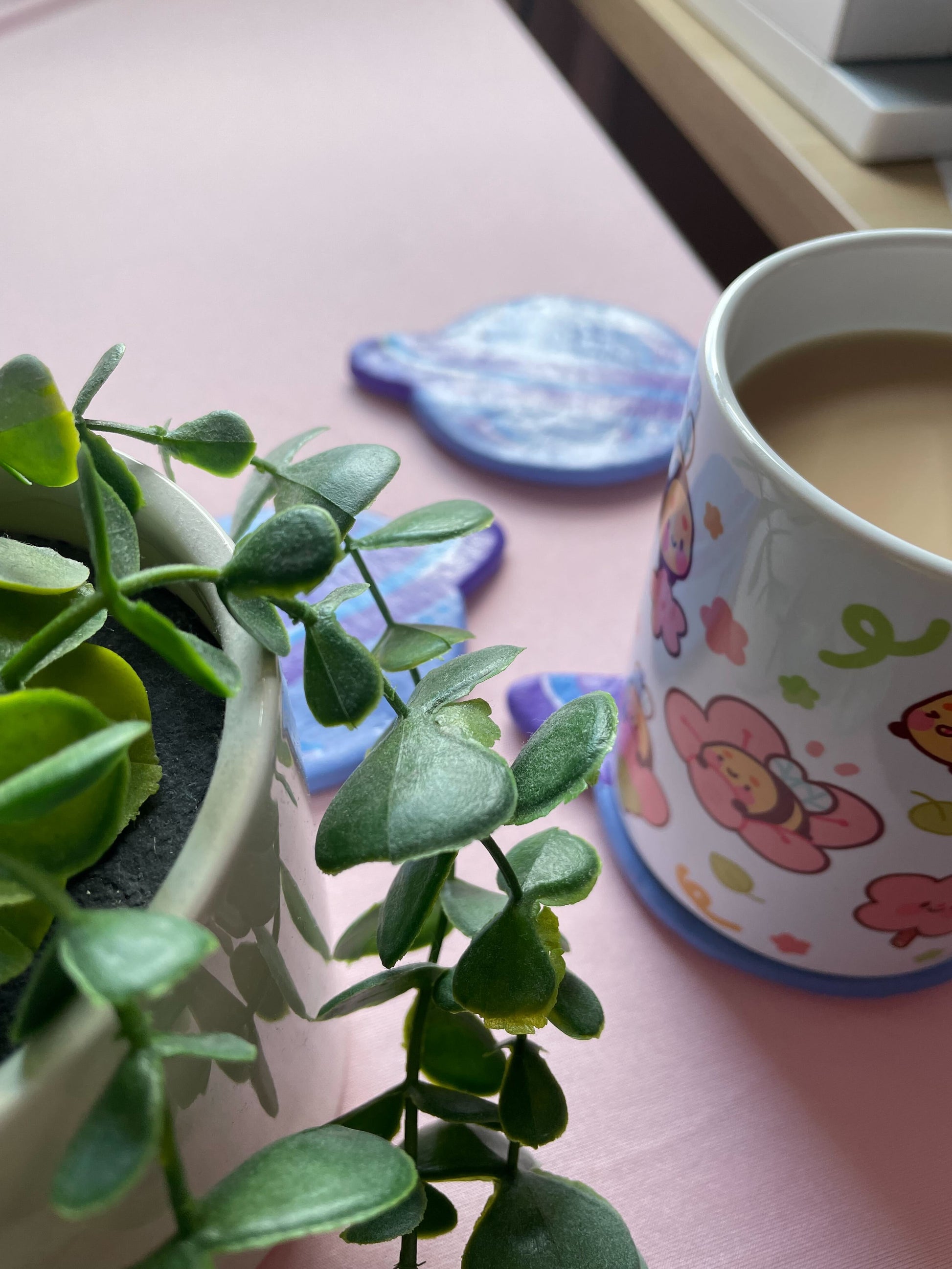 All coasters are made using air dry clay, sculpted by hand, handpainted and then varnished to add that extra layer of protection and shine! They have four small cork feet on each corner to protect surfaces.